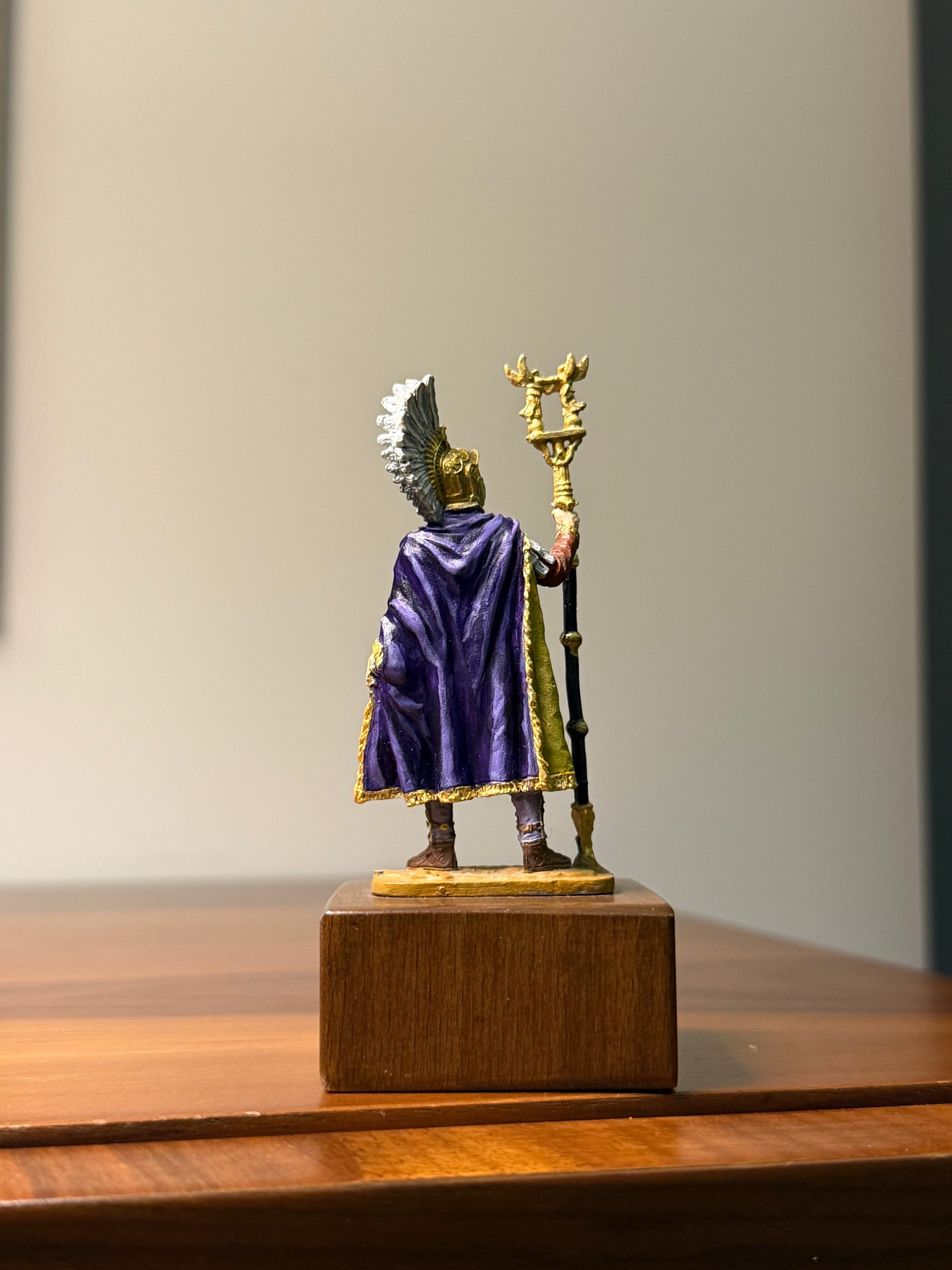 This hand-painted 54 mm miniature depicts Carausius, the Roman military commander and self-proclaimed Emperor of Britain during the late 3rd century CE. A skilled naval leader, Carausius established an independent Romano-British rule and minted his own imperial coinage, making him one of the most fascinating figures of the Roman Empire’s crisis era.