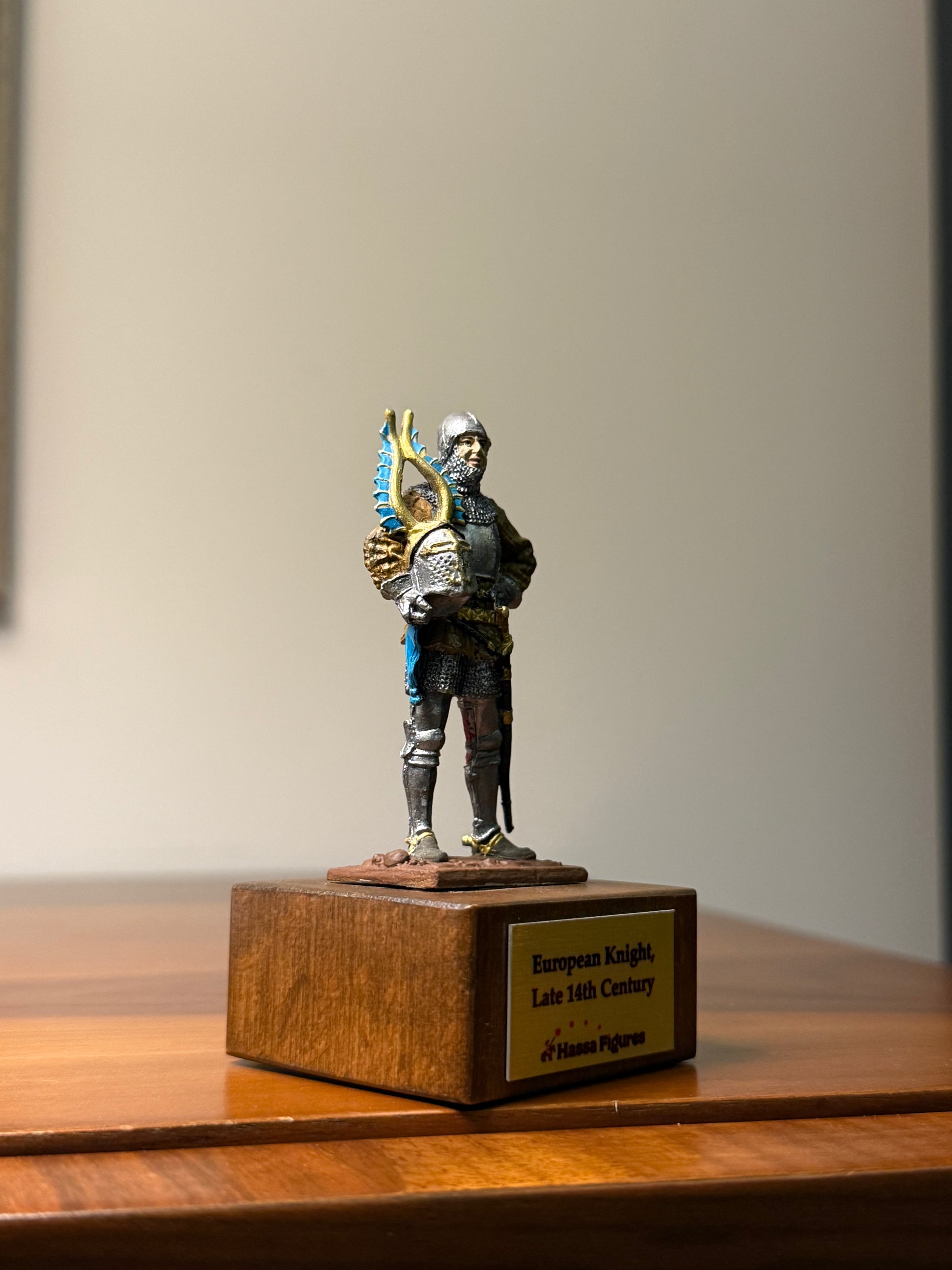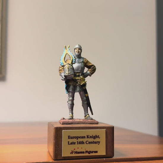 This hand-painted 54 mm miniature represents a Late 14th Century European Knight, during a time of evolving armor design and intense chivalric warfare across Europe. Knights of this era often fought in campaigns during the Hundred Years’ War, feudal conflicts, and regional power struggles.