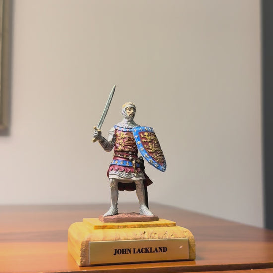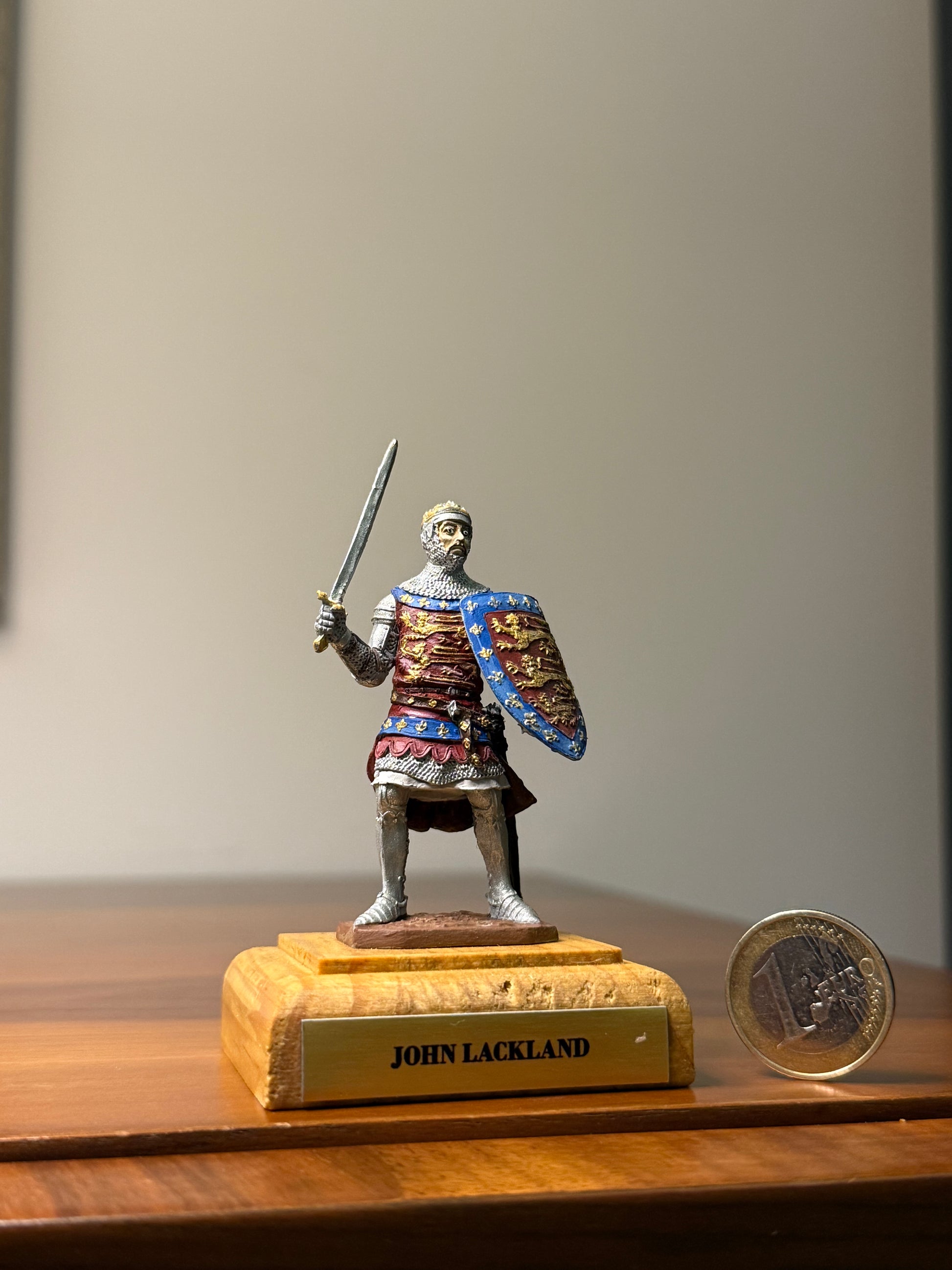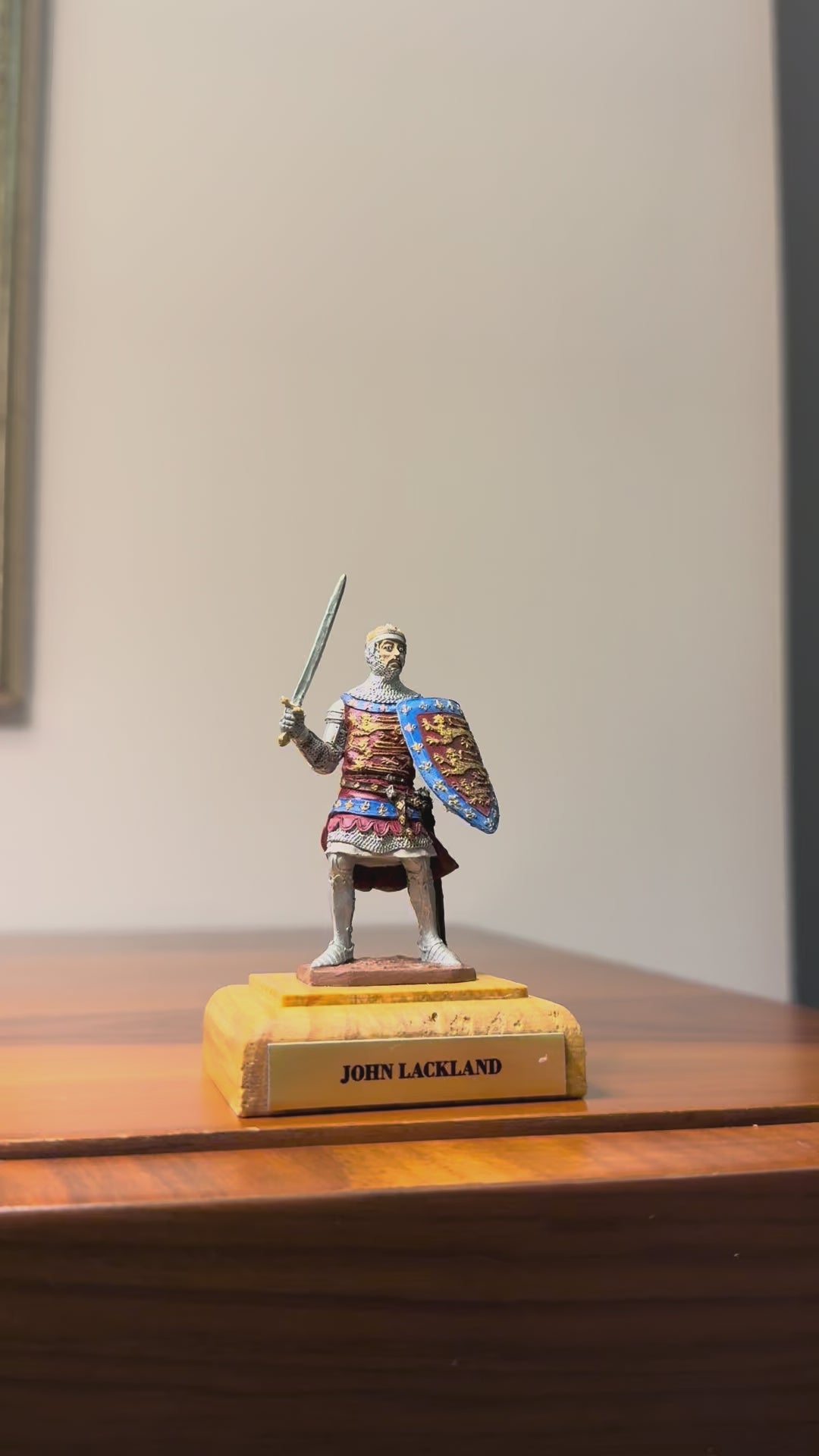 Depicted in royal attire and chainmail befitting a medieval king, this figure captures both the authority and the turbulent era of John’s rule — a time of shifting alliances, crusades, political intrigue, and feudal transformation.
