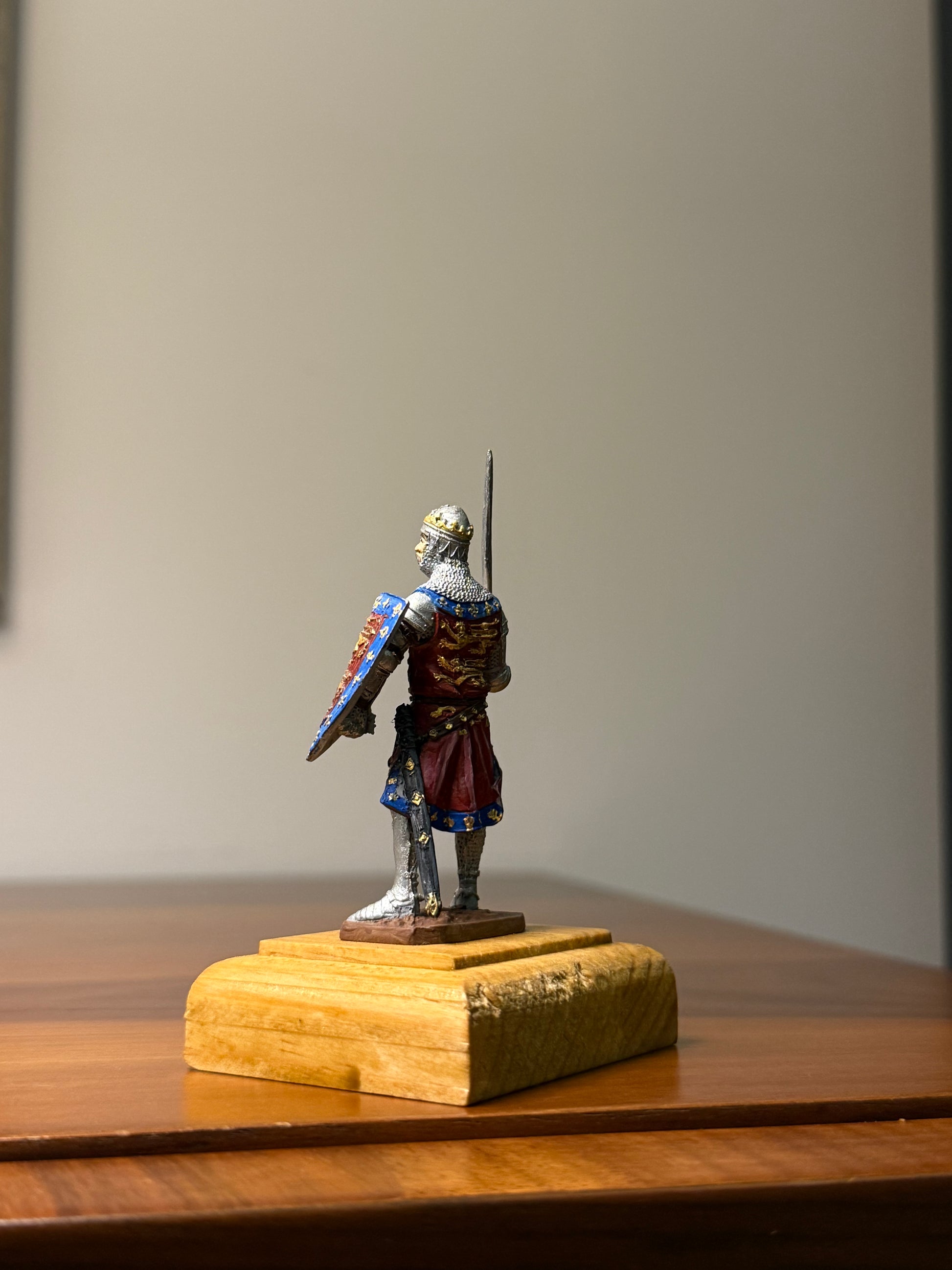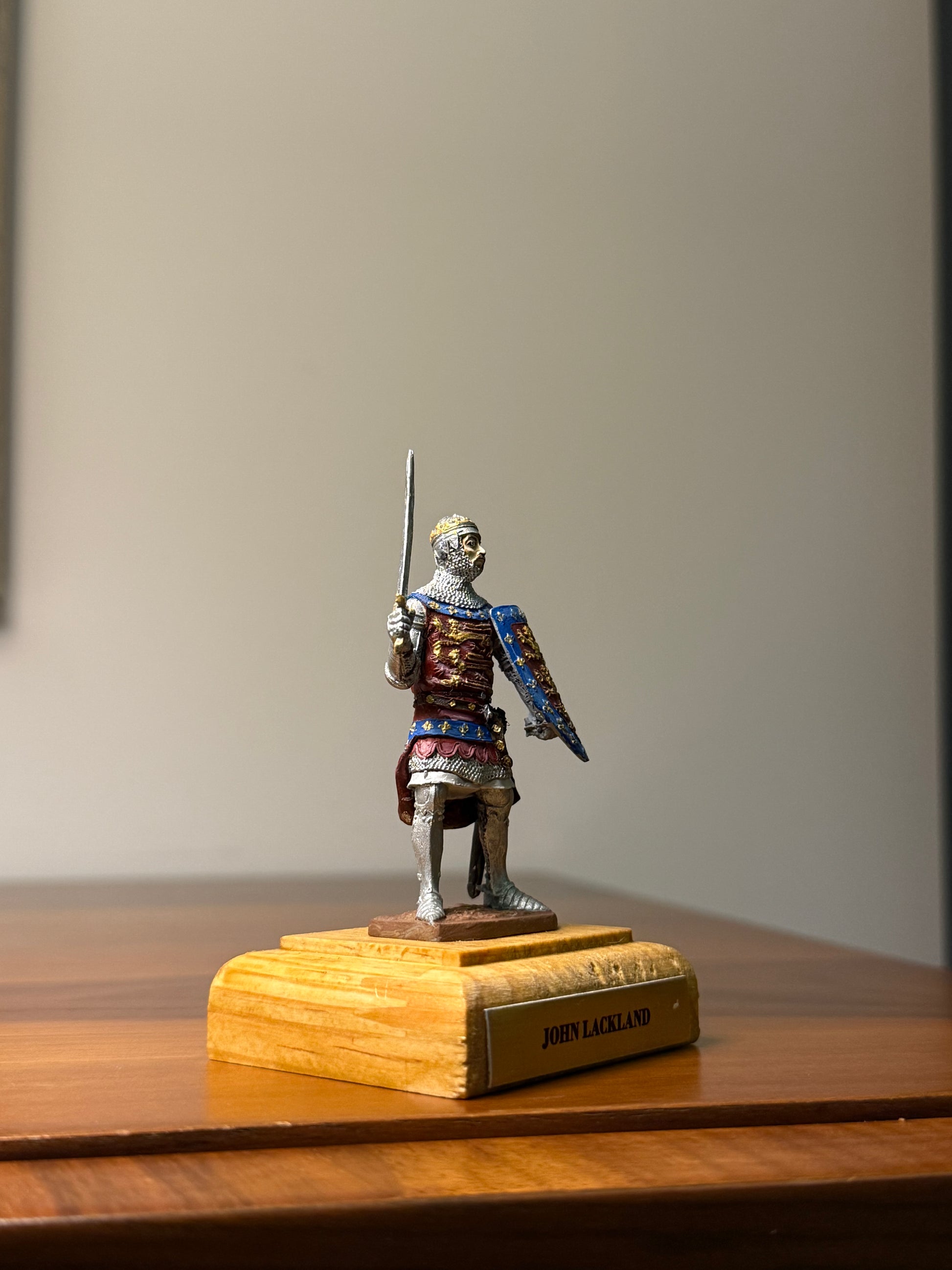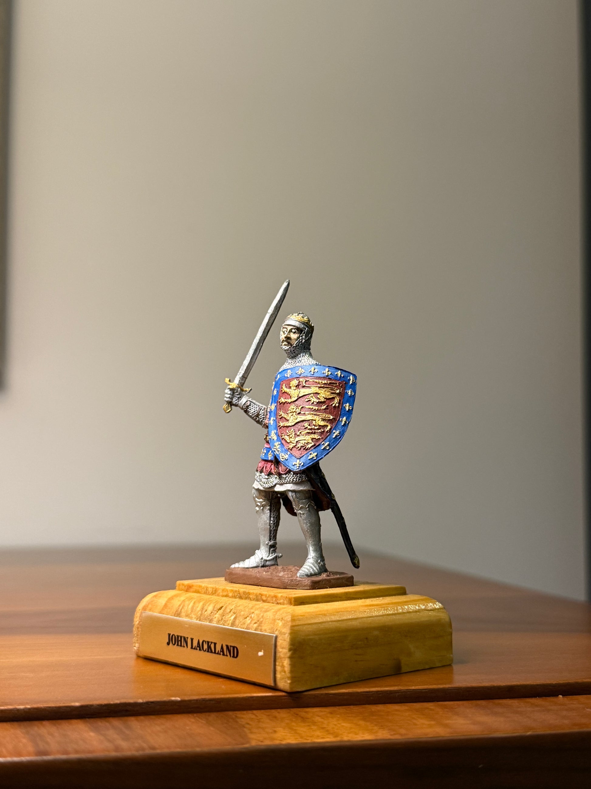 Depicted in royal attire and chainmail befitting a medieval king, this figure captures both the authority and the turbulent era of John’s rule — a time of shifting alliances, crusades, political intrigue, and feudal transformation.
