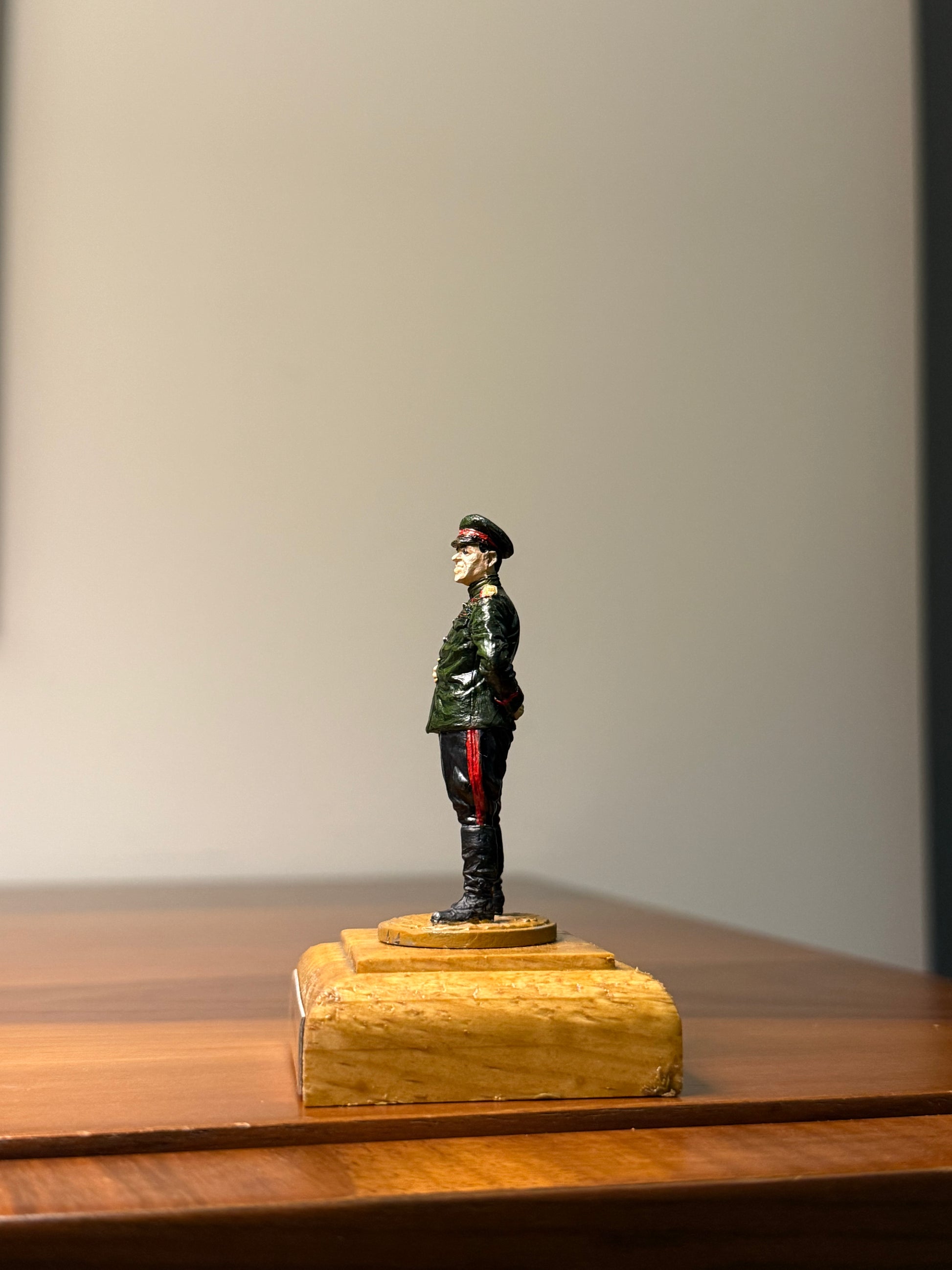 This hand-painted 54 mm miniature depicts Georgy Zhukov, Marshal of the Soviet Union and one of the leading military strategists of World War II. Zhukov played pivotal roles in the Battle of Moscow, Stalingrad, Kursk, and the capture of Berlin, making him one of the most recognized commanders of the Eastern Front.