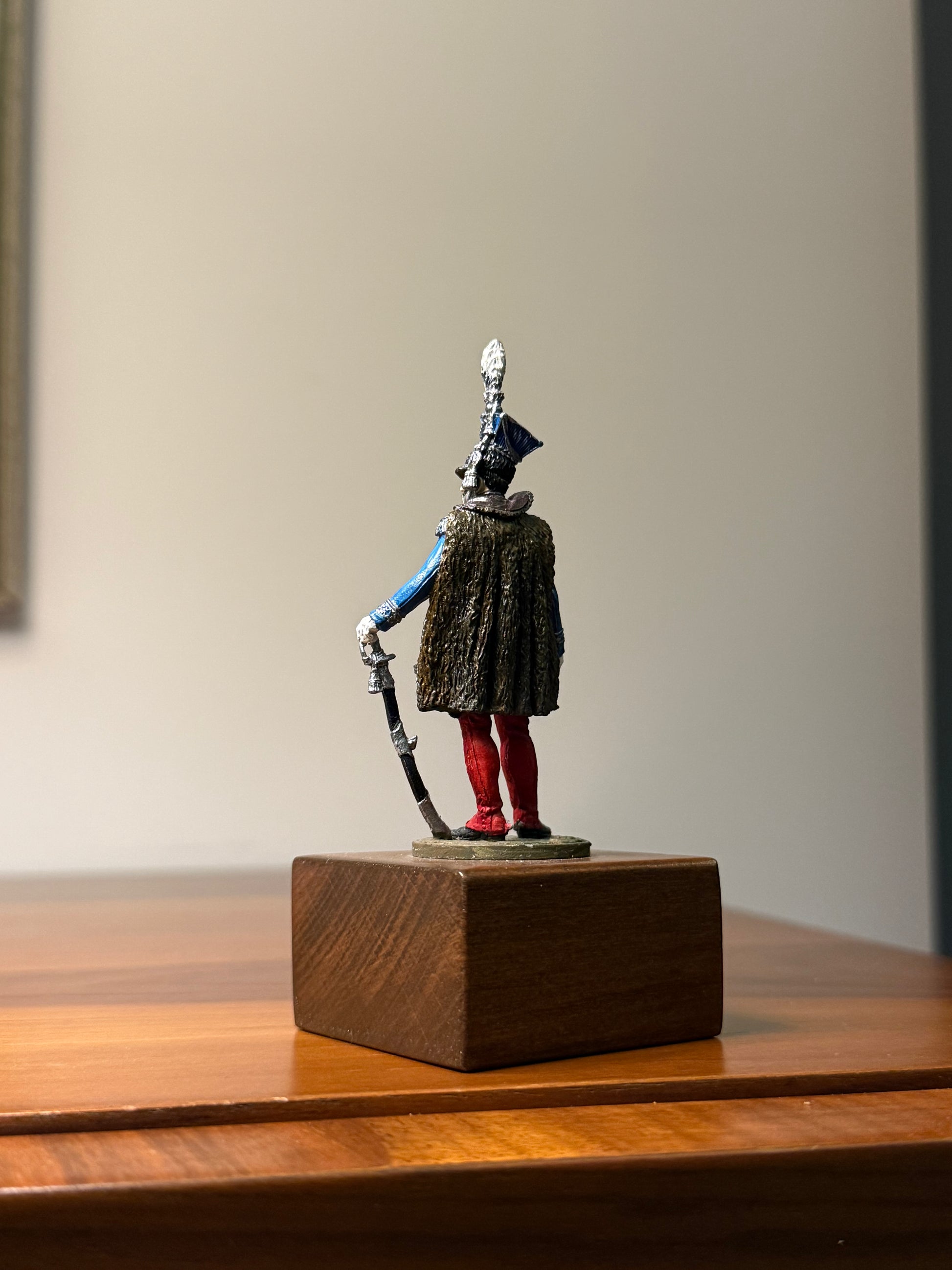 This hand-painted 54 mm miniature depicts Prince Józef Poniatowski (1763–1813), a distinguished Polish noble and Marshal of France during the Napoleonic Wars. Poniatowski commanded the Polish Vistula Legion and led Polish troops with honor and loyalty both to Poland and to Napoleon.