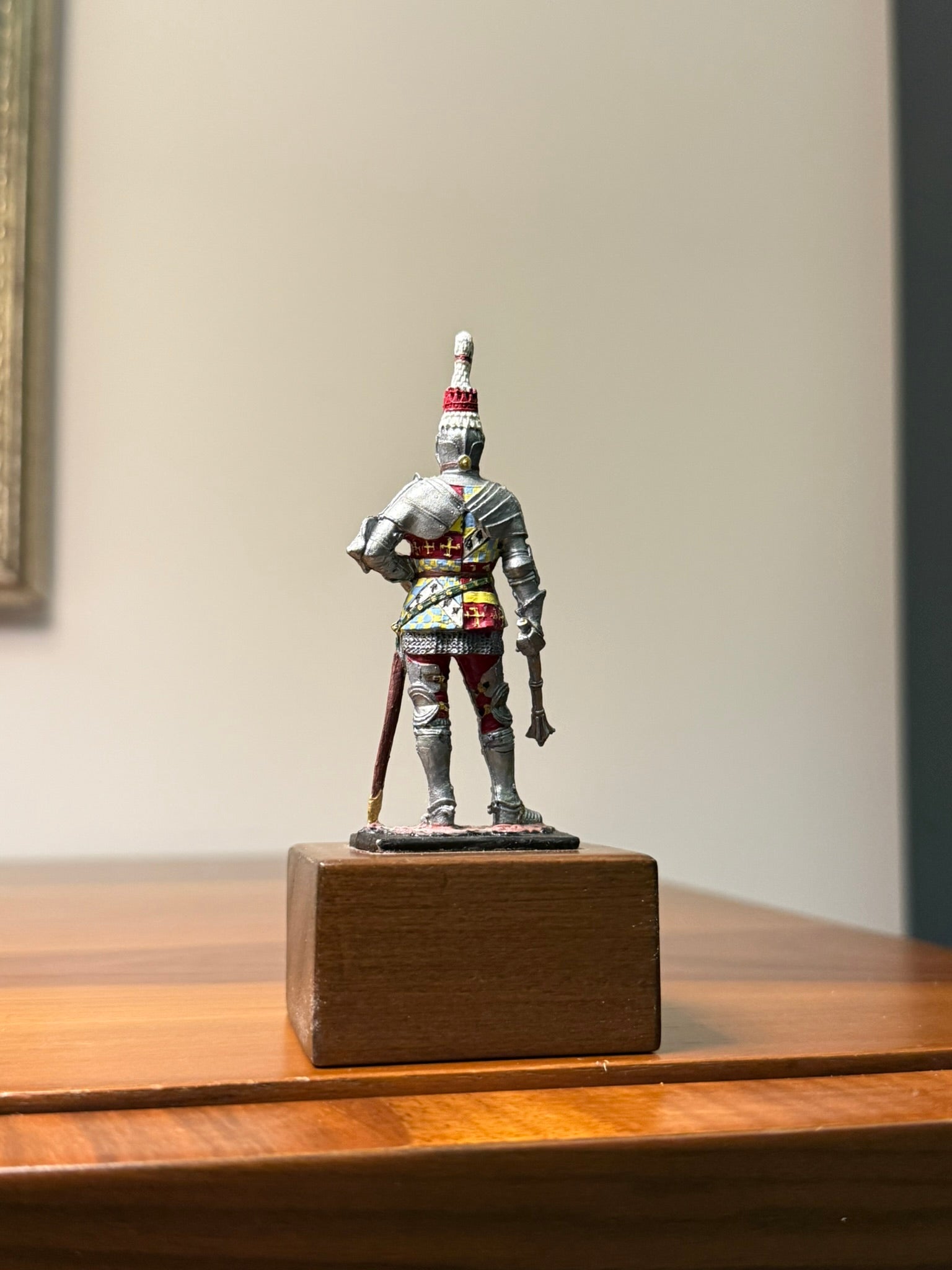 This hand-painted 54 mm miniature depicts Richard Neville, the 16th Earl of Warwick, one of the most powerful figures of the Wars of the Roses (1455–1487). Known as “The Kingmaker” for his decisive influence in placing kings on the English throne, Warwick remains a legendary symbol of political and military power in medieval England.