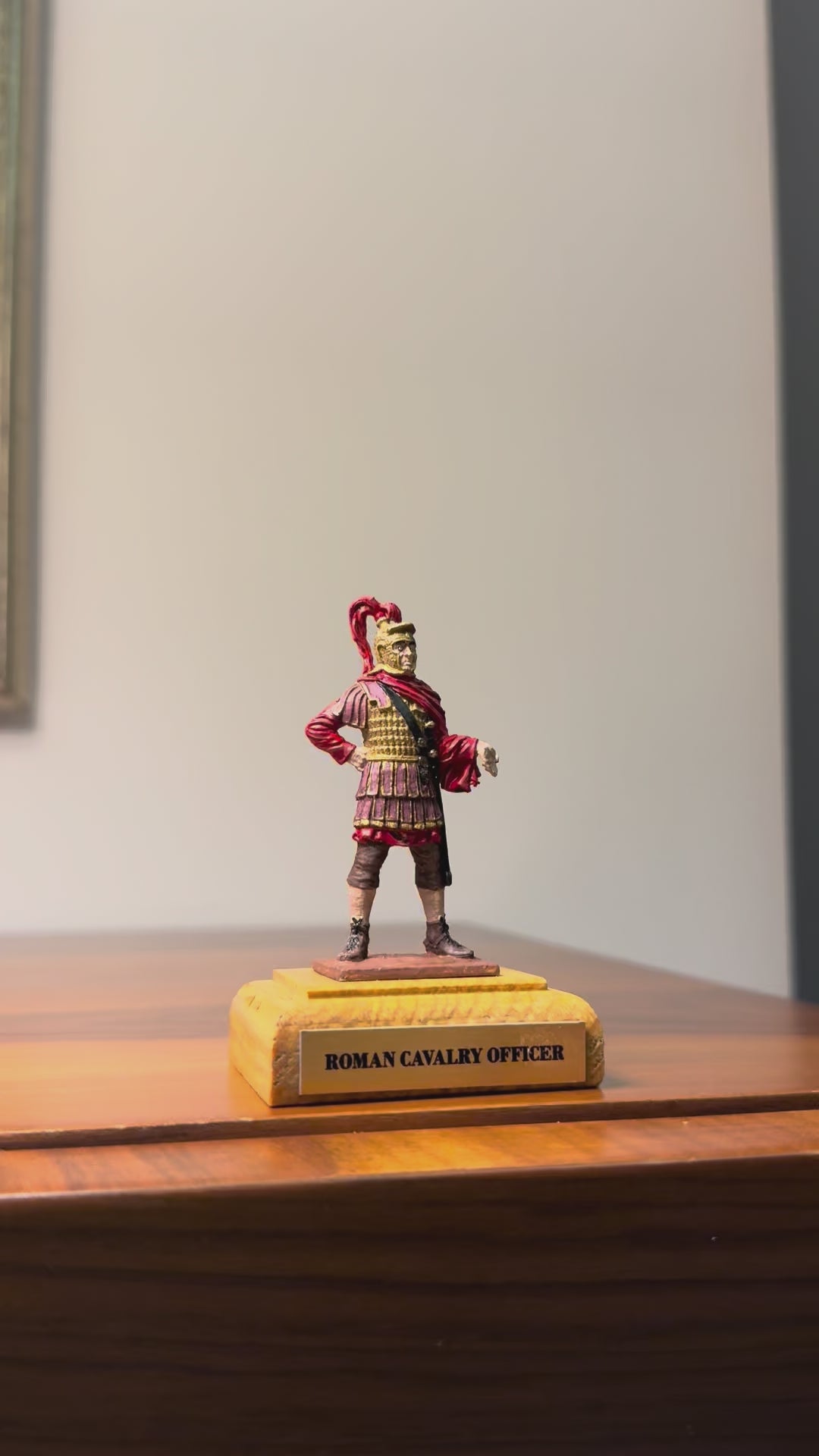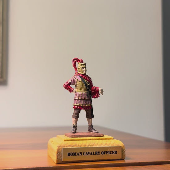 This hand-painted 54 mm miniature represents a Roman Cavalry Officer (Decurion) of the Imperial Roman Army during the 1st–2nd centuries CE. Decurions commanded cavalry squadrons and acted as elite battlefield leaders who coordinated charges, reconnaissance, and flanking maneuvers.