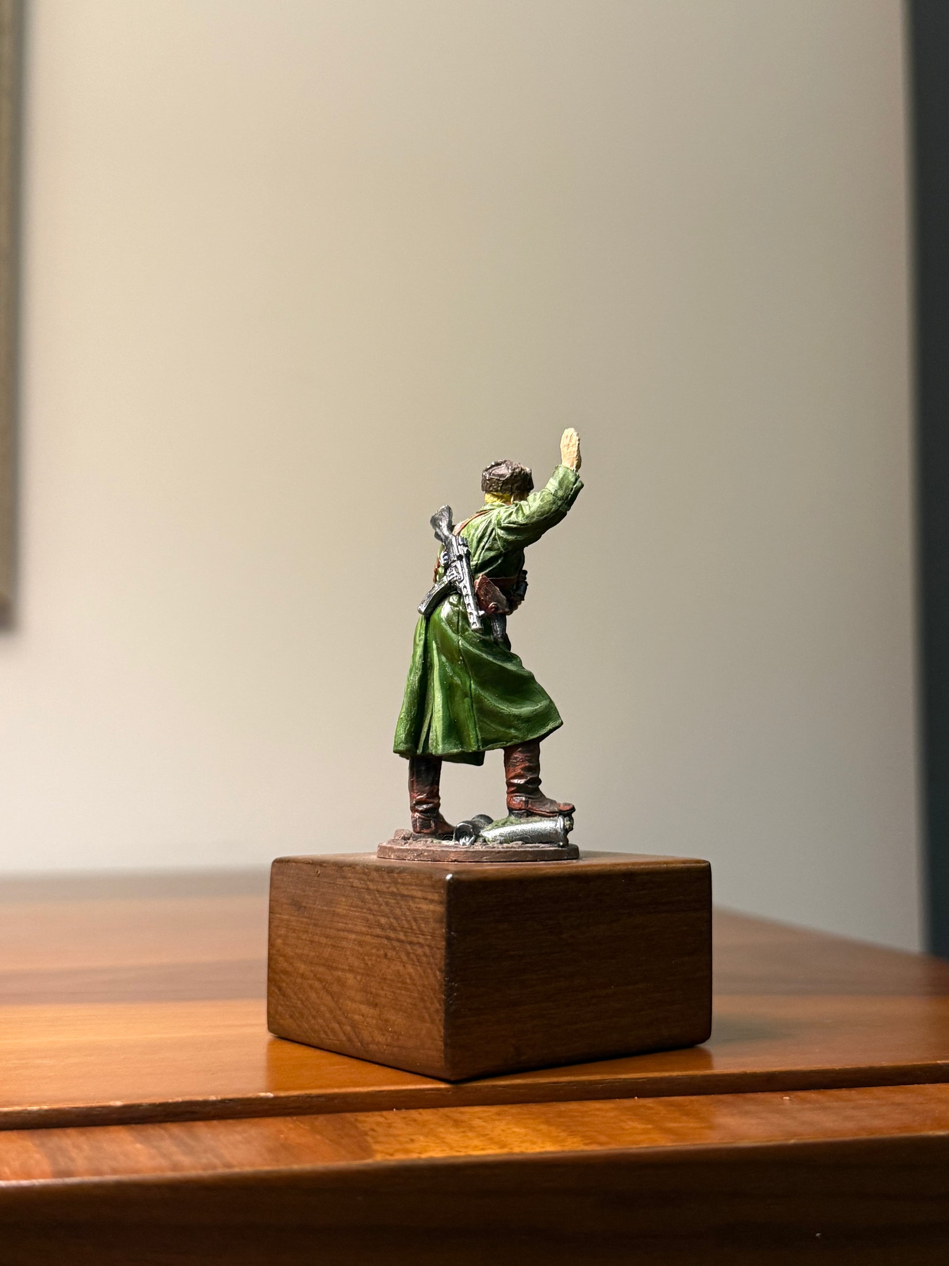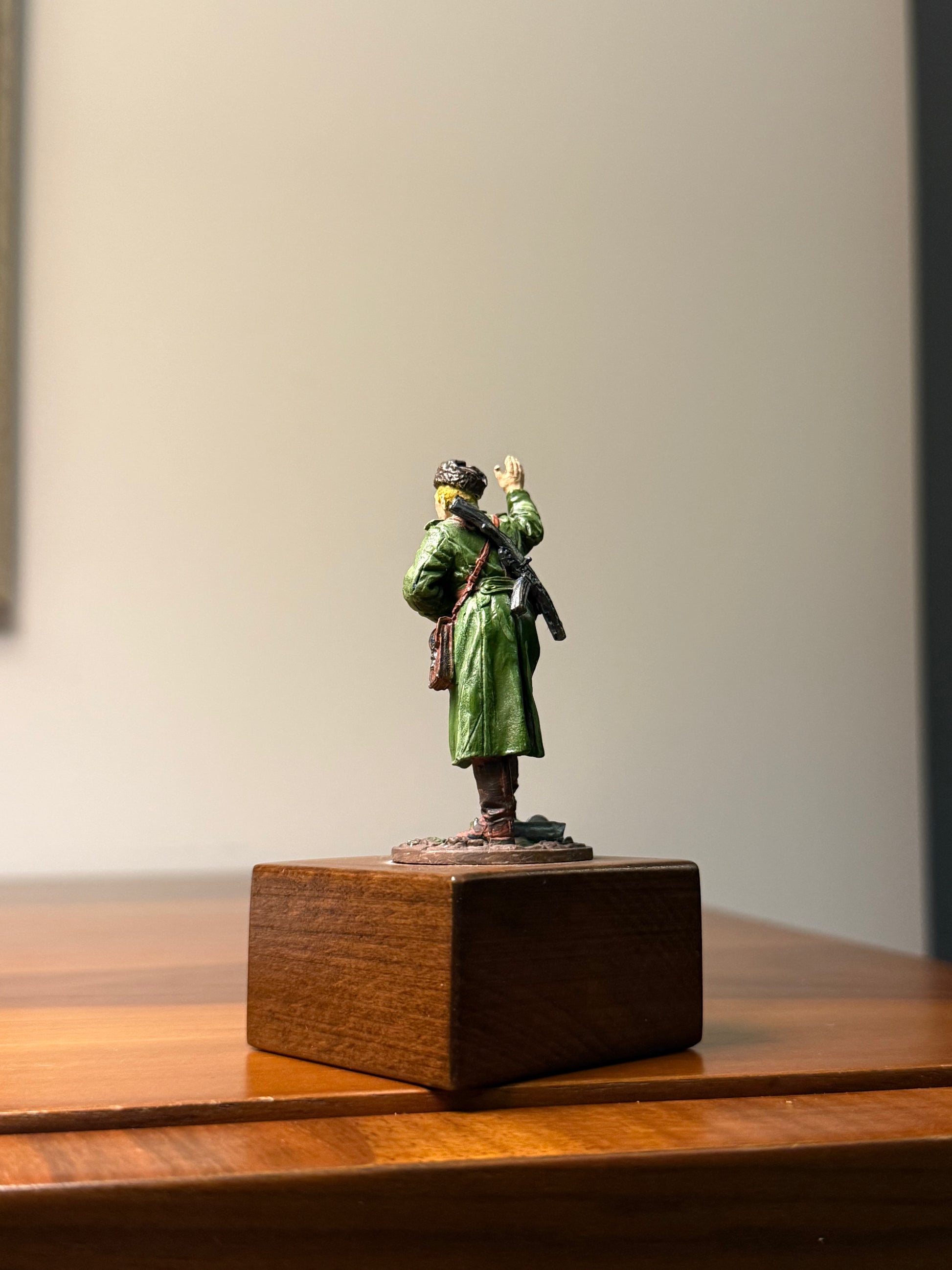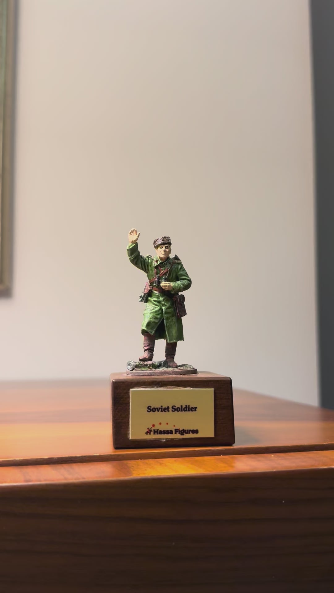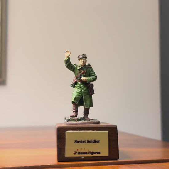 This hand-painted 54 mm miniature represents a Soviet Red Army rifleman serving on the Eastern Front during World War II. Soldiers like this formed the backbone of the Red Army in urban battles, winter campaigns, and major offensives from Stalingrad to Berlin.