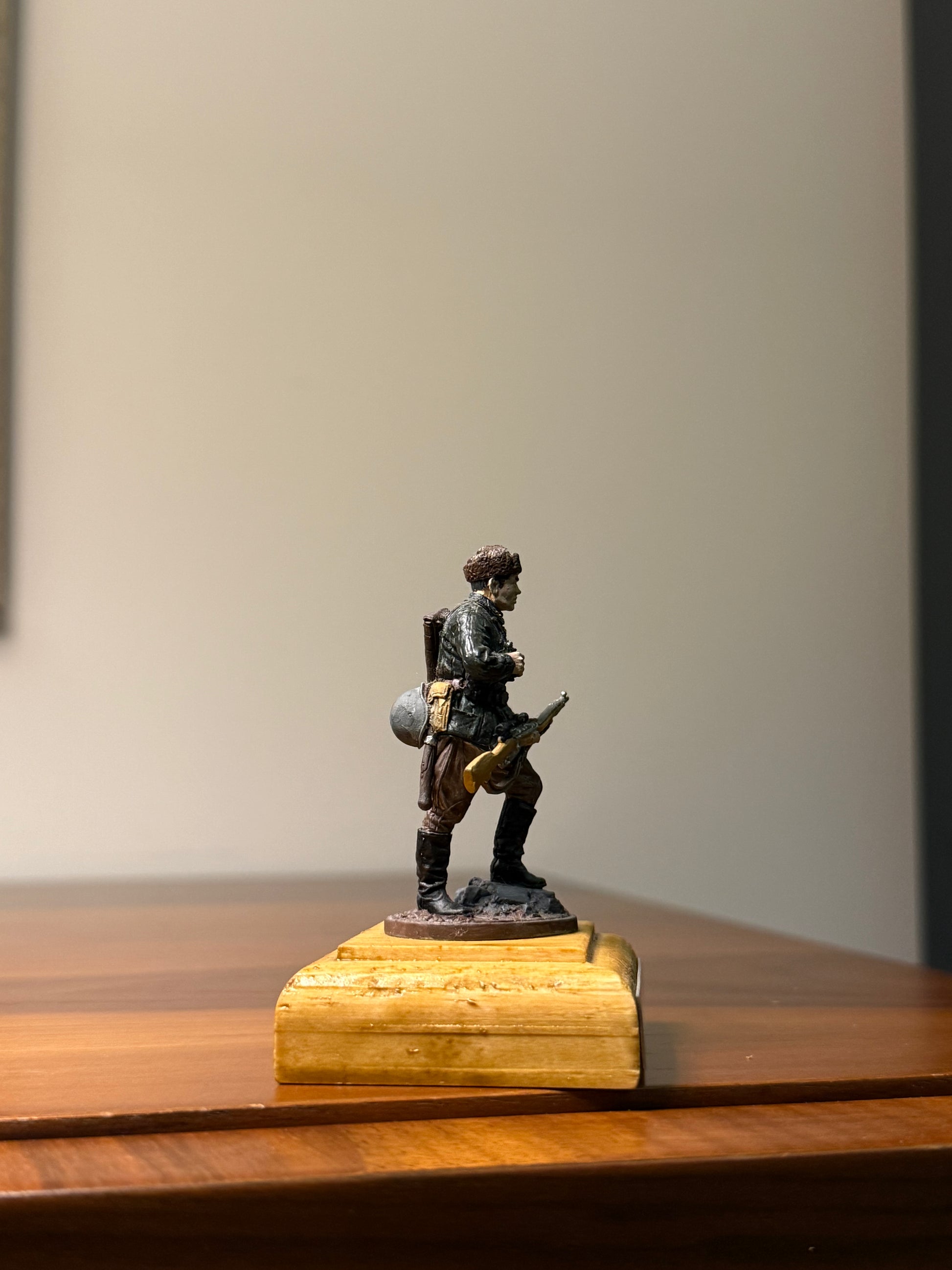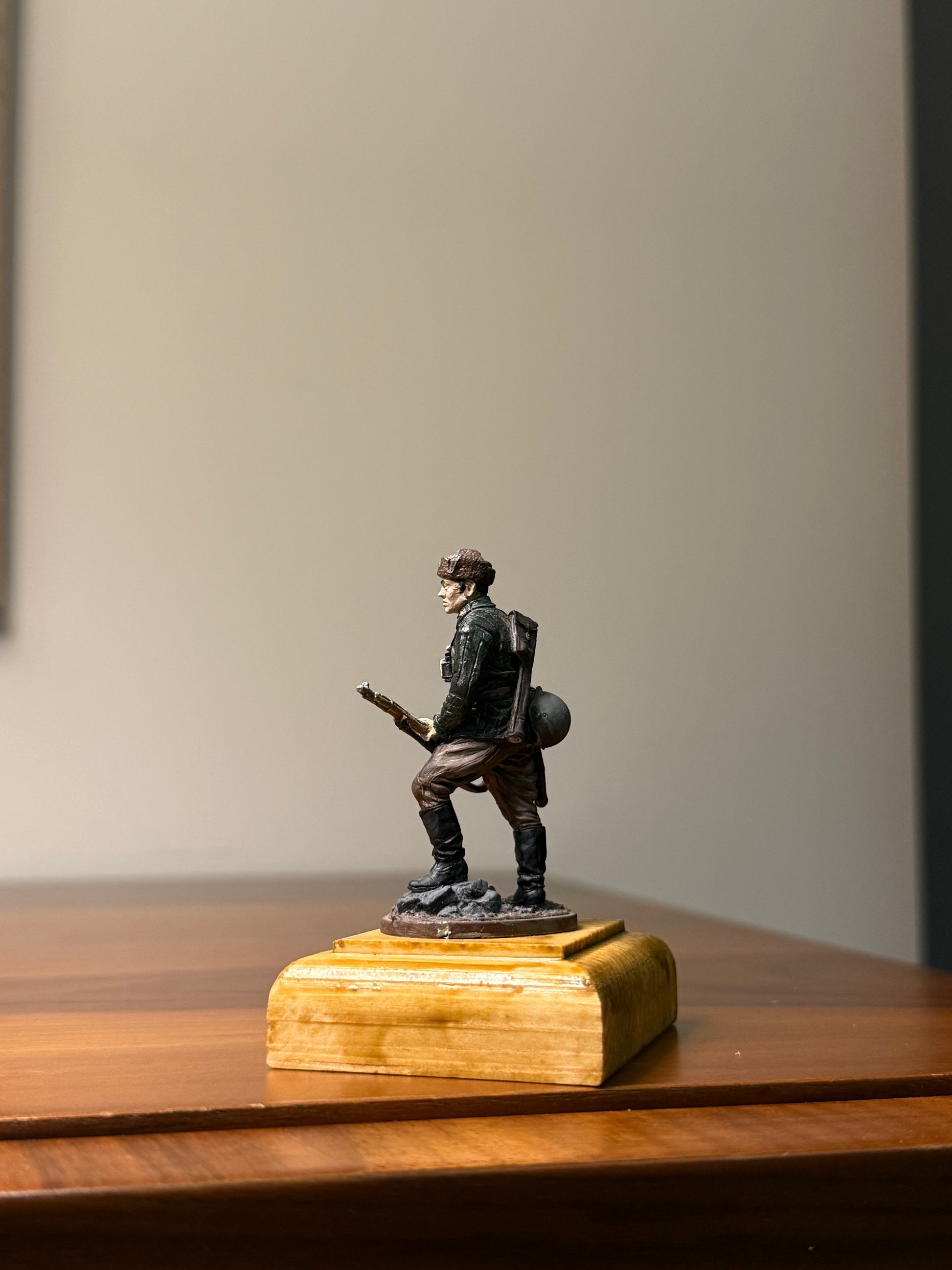 This hand-painted 54 mm miniature depicts Vasily Grigoryevich Zaitsev, one of the most well-known Soviet snipers of World War II, whose actions during the Battle of Stalingrad (1942–1943) made him a notable figure in Eastern Front history.