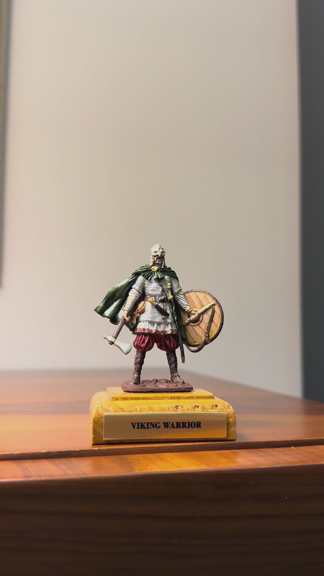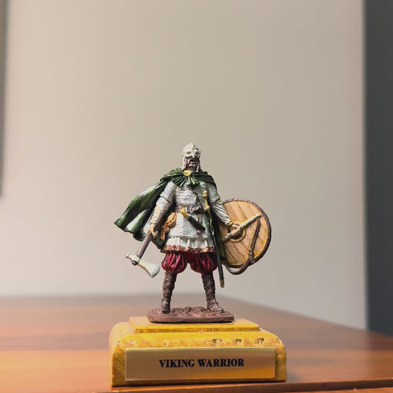 This miniature represents a Viking raider from the 9th century — part of the early wave of Norse exploration and warfare across the North Sea and beyond. Equipped with practical armor, a round wooden shield, and the determination of northern warriors, these raiders shaped the course of European history.